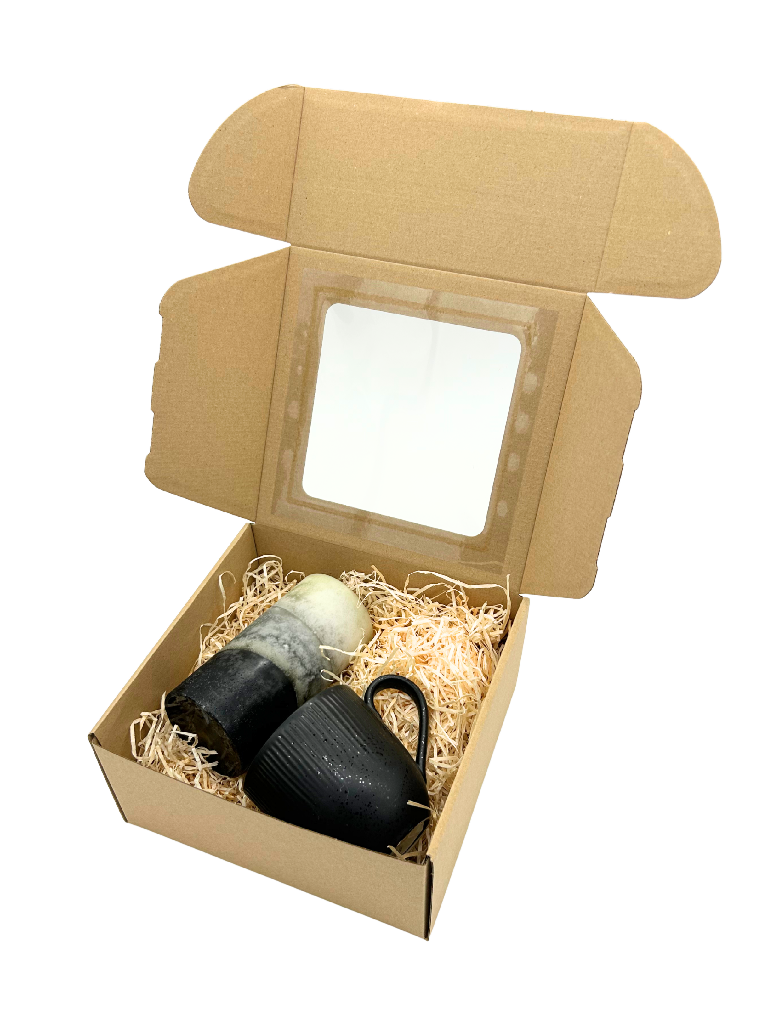 Przejrzyste Okienko: Wykończone folią celofan, okienko o wymiarach 140x140mm dodaje uroku i pozwala zobaczyć zawartość pudełka, przyciągając uwagę klientów.