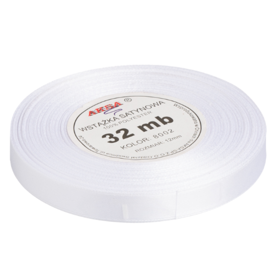 Wstążka satynowa 12mm 32mb, biała